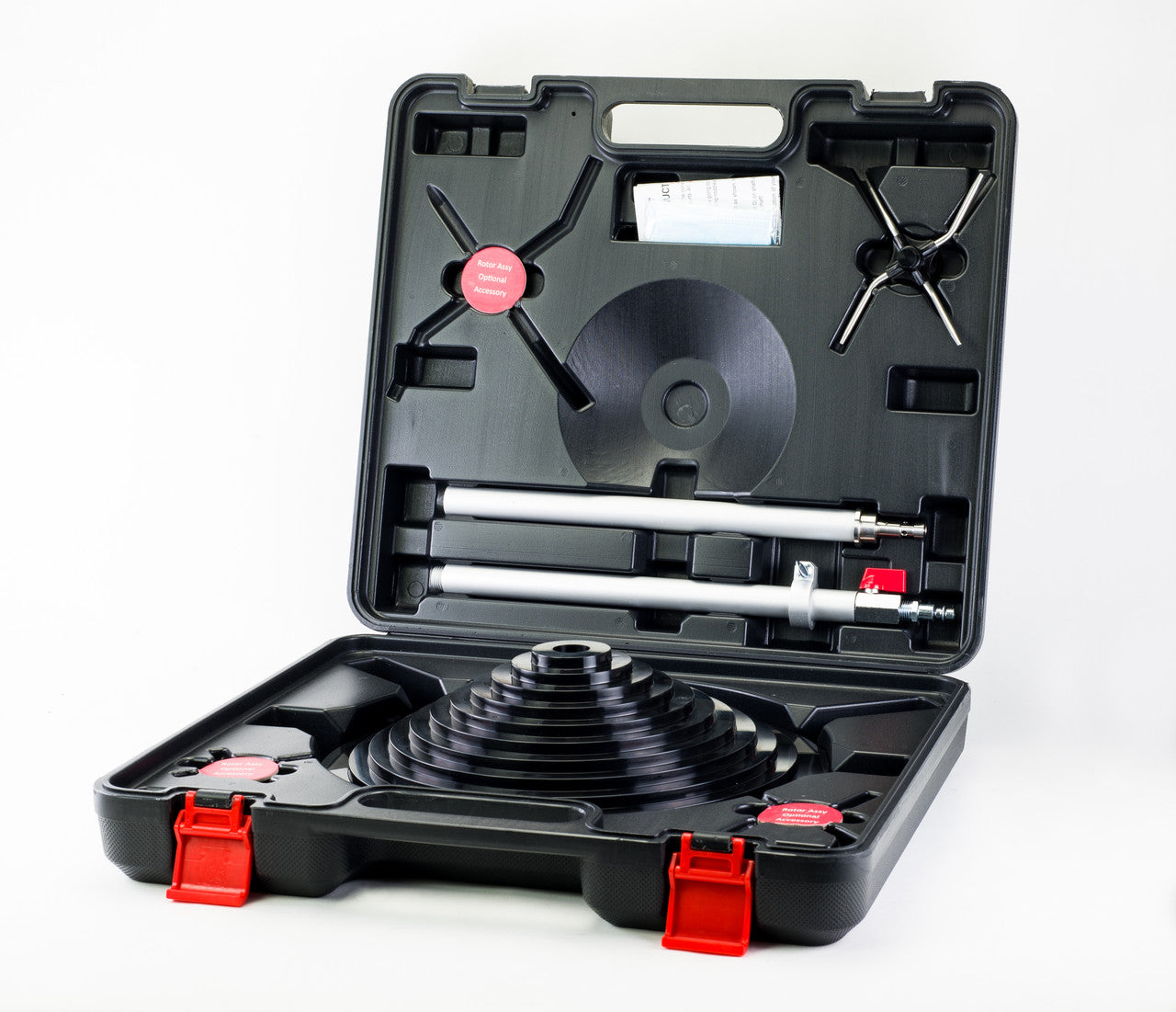 The standard Portable Unit comes conveniently packed in a secure and durable carrying case along with the 6" rotor head. Each case has slots to accommodate all of our different sized rotors that are sold separately as optional rotors so you can build your kit with only the rotors that you need to clean your air filters. The standard portable unit will clean filters up to 25 inches tall. 3", 4.5" and 9" rotors are available but are sold separately.