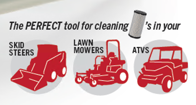 The Filter Blaster MINI is designed to be taken directly into the field or on the trails as a portable air filter cleaner for small Skid Steers, ATV’s, Side-by Sides, and Lawn Mowers & Tractors with diesel, gas or propane engine air filters or any piece of equipment with a small canister style filter. The Filter Blaster MINI utilizes internal regulation to produce rotating streams of air to clean your small pieces of equipment’s engine air filter or any small canister style filter quickly, effectively but most importantly SAFELY!!
