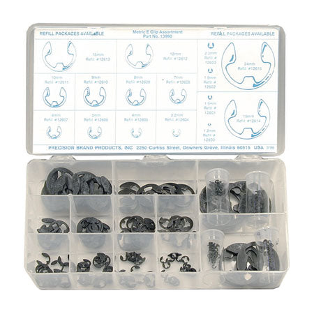 External metric clips, made of carbon steel to retain positive retention of pulleys, sprockets, springs and bearings on shafts and rods.
