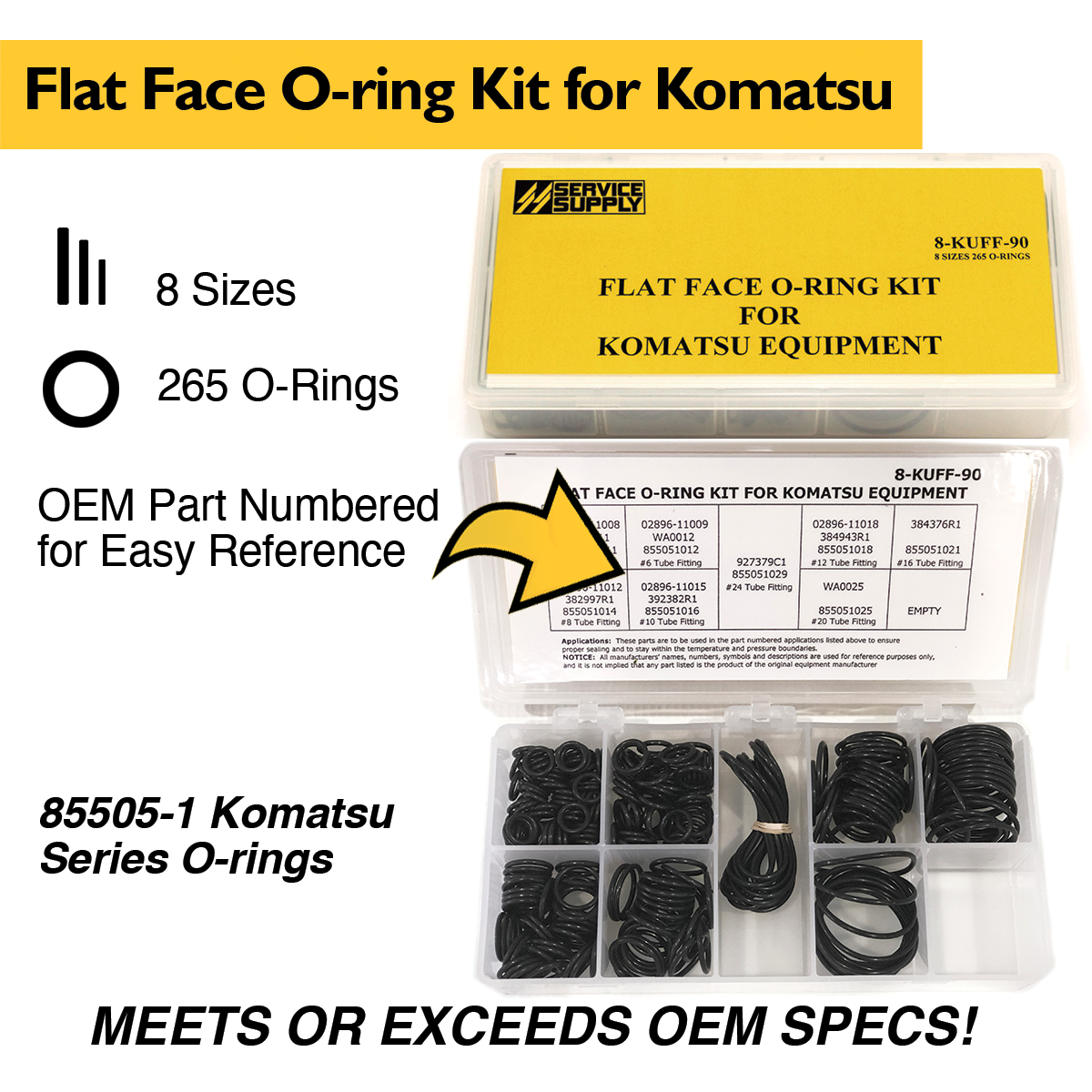 This compact single-sided kit contains all high-pressure, Ors (flat- face) o-rings from the 85505-1 Komatsu Series o-rings.
