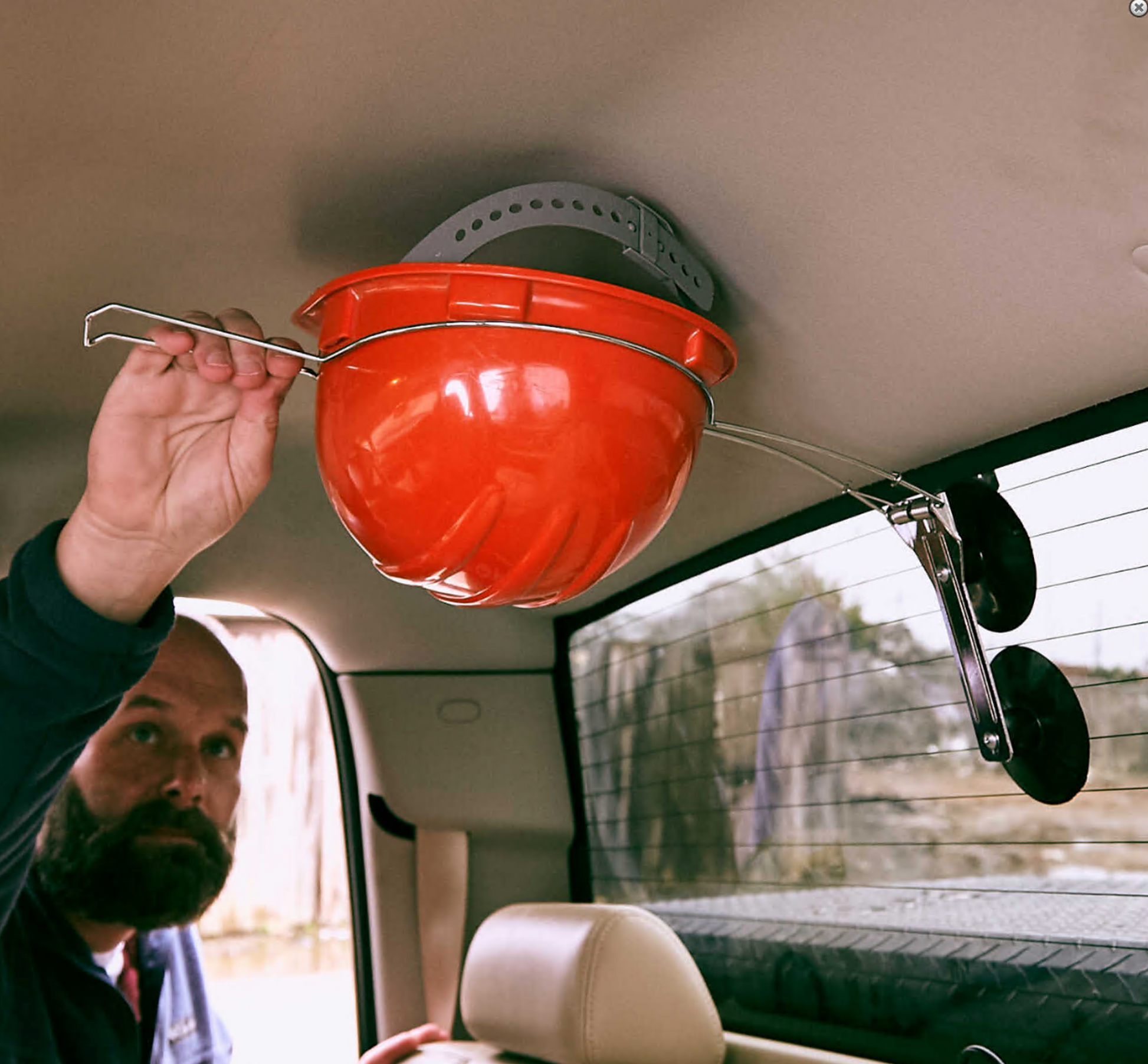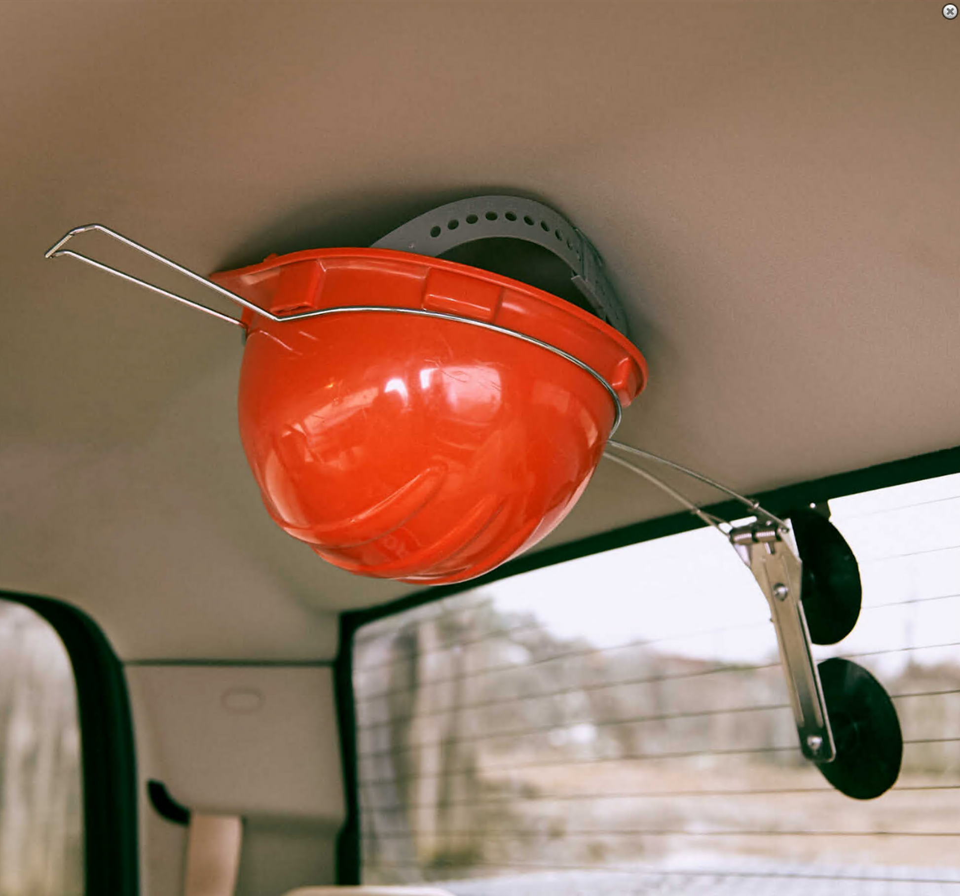 Spring-loaded swivel holds your hard hat securely and keeps it out of the way.