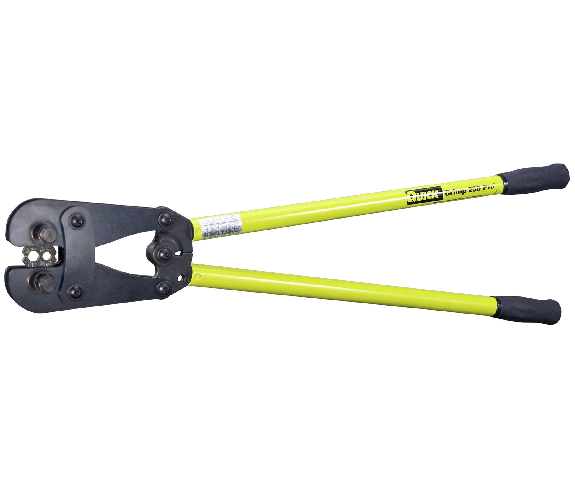 Crimps all major brands of connectors. Features comfortable hand grips and adjustable rotating color coded dies always in tool. Patented features. 2 Year Limited Warranty. Made in North America.