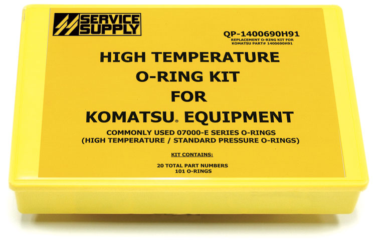 This single-sided o-ring service kit contains commonly used 07000 high temperature E series o-rings for Komatsu equipment, and replaces Komatsu kit #1400690H91.