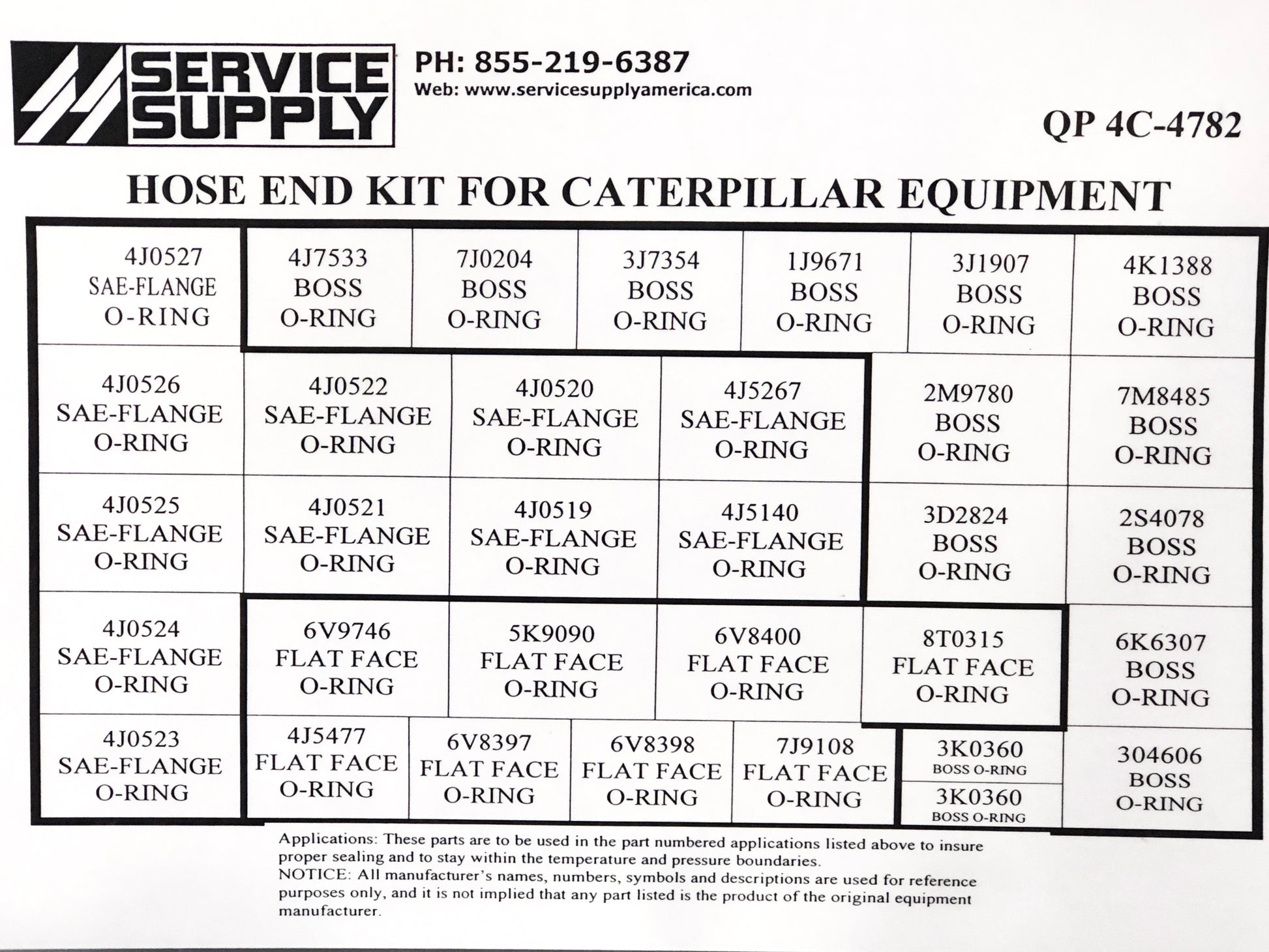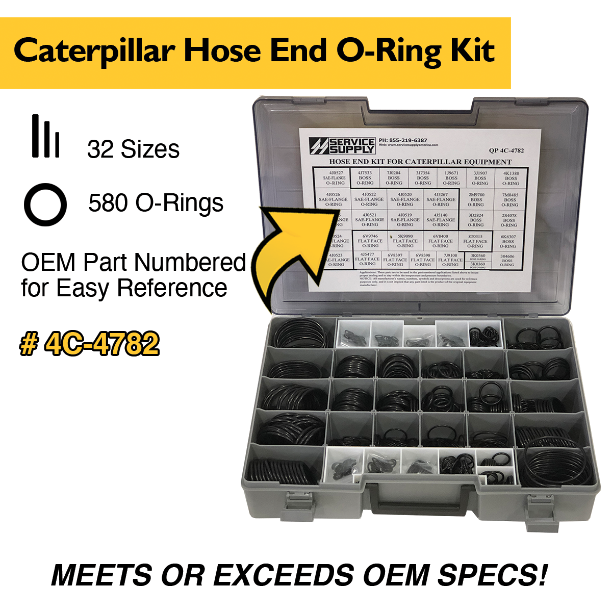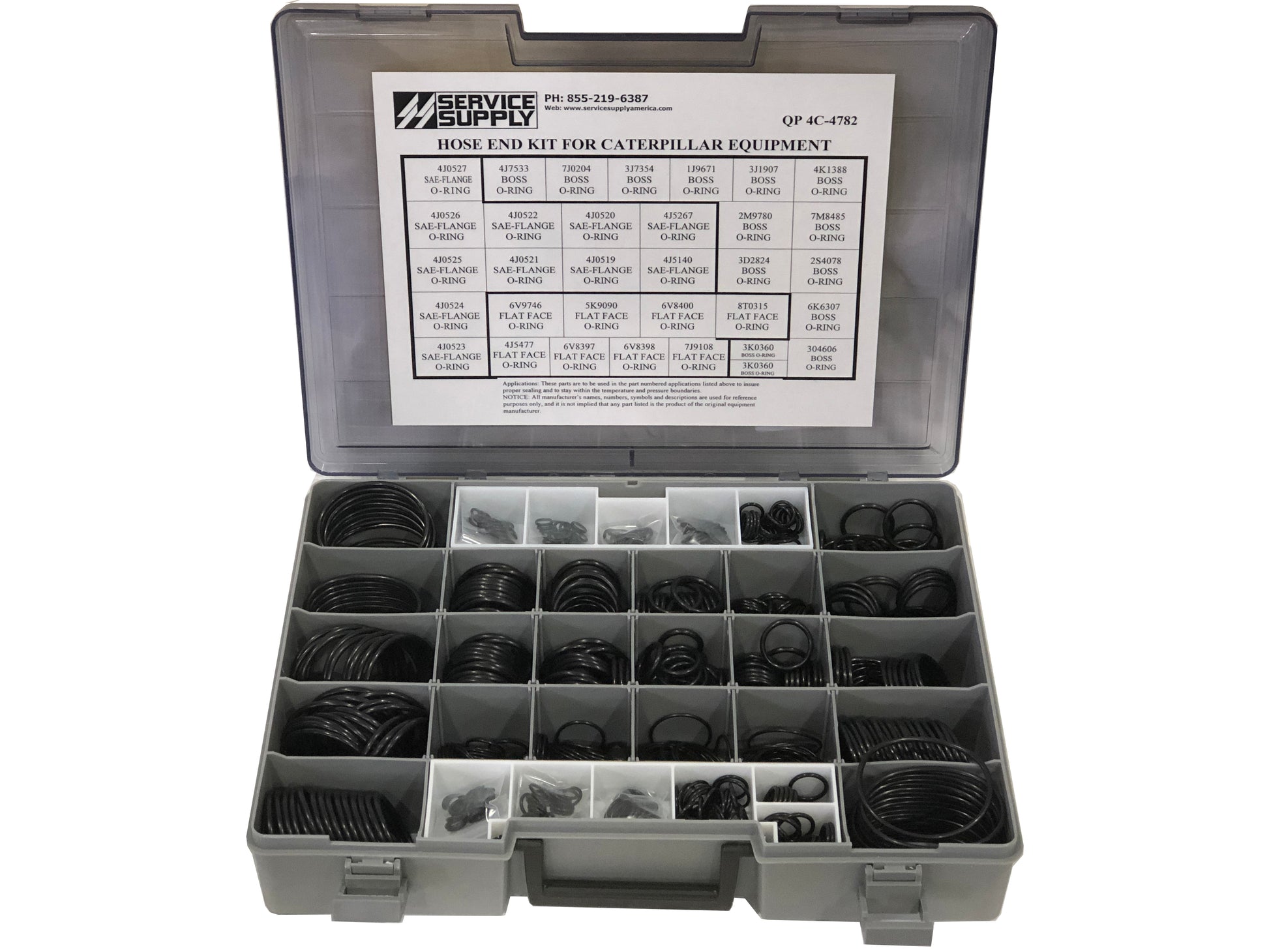 This single-sided, all high-pressure hose end kit contains standard size o-rings for Caterpillar equipment, which replaces Caterpillar kit #4C-4782.