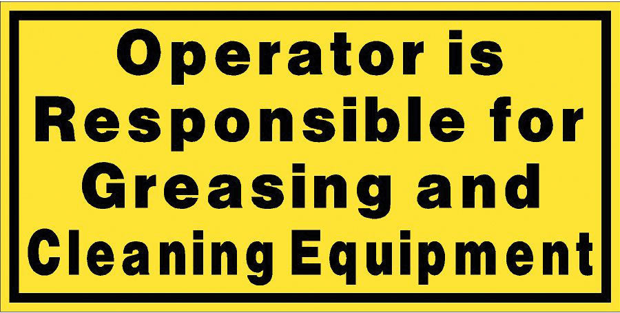 Maintenance Decal: "Operator Responsible for Greasing and Cleaning Equipment", 5 Pk