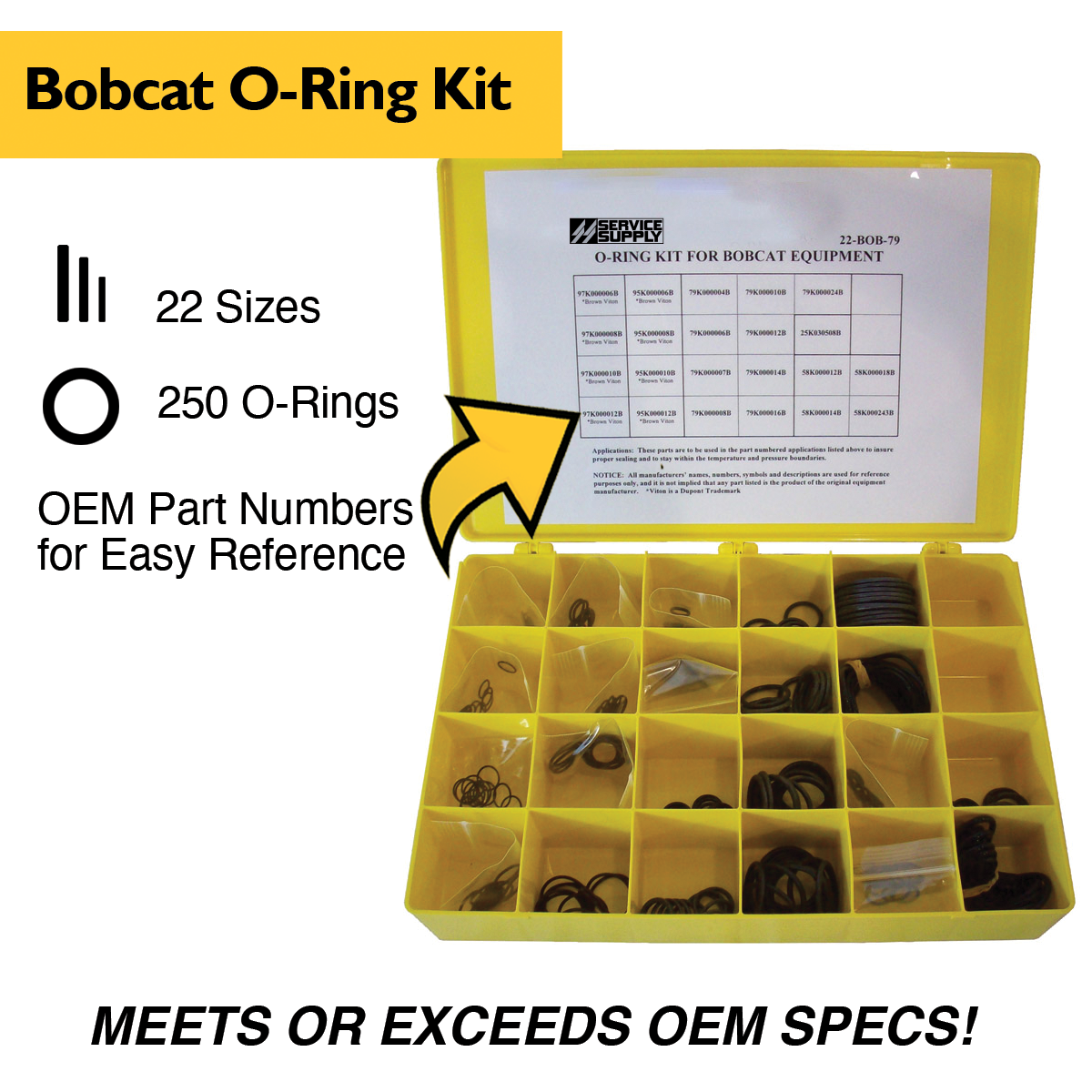 This single-sided kit contains low- and high-pressure o-rings for Bobcat® equipment, including a large assortment for hose end fittings.