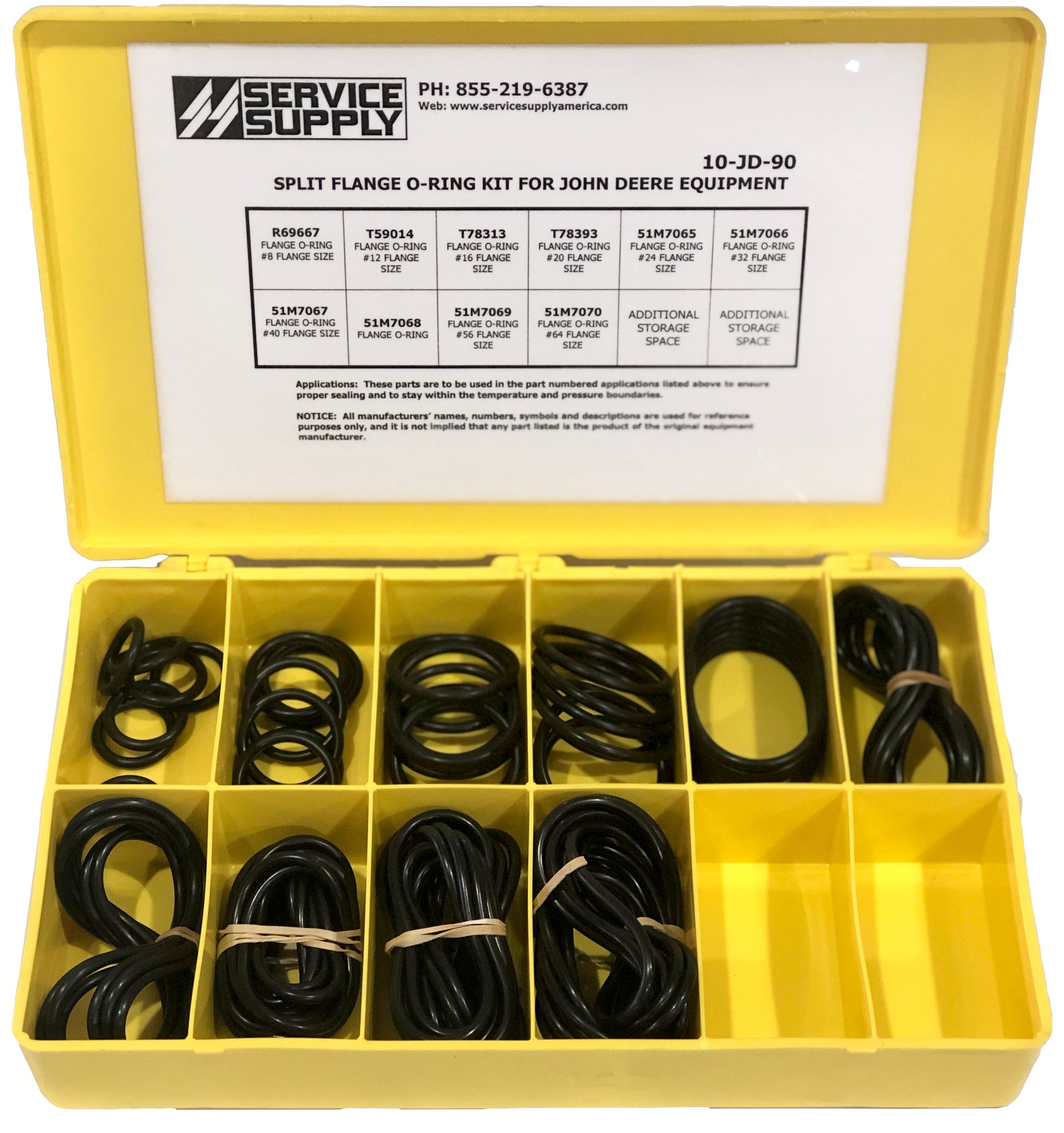 This single sided, industrial kit contains high-pressure, SAE split-flange o-rings for use on John Deere equipment and replaces John Deere kit #TY16430.