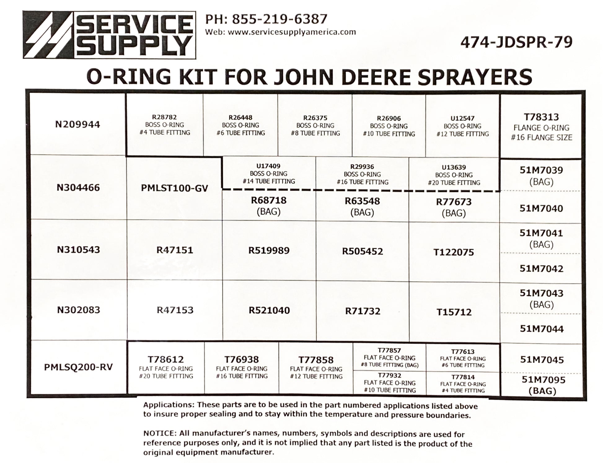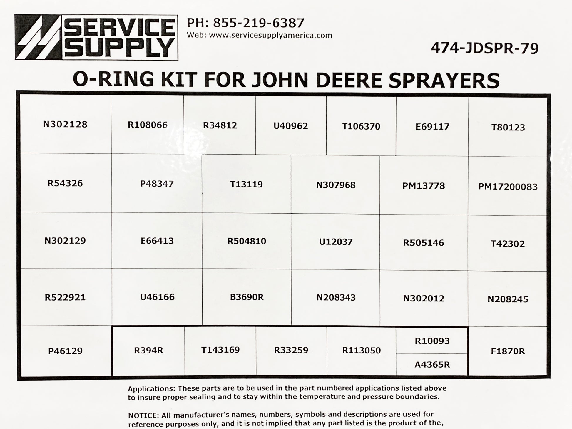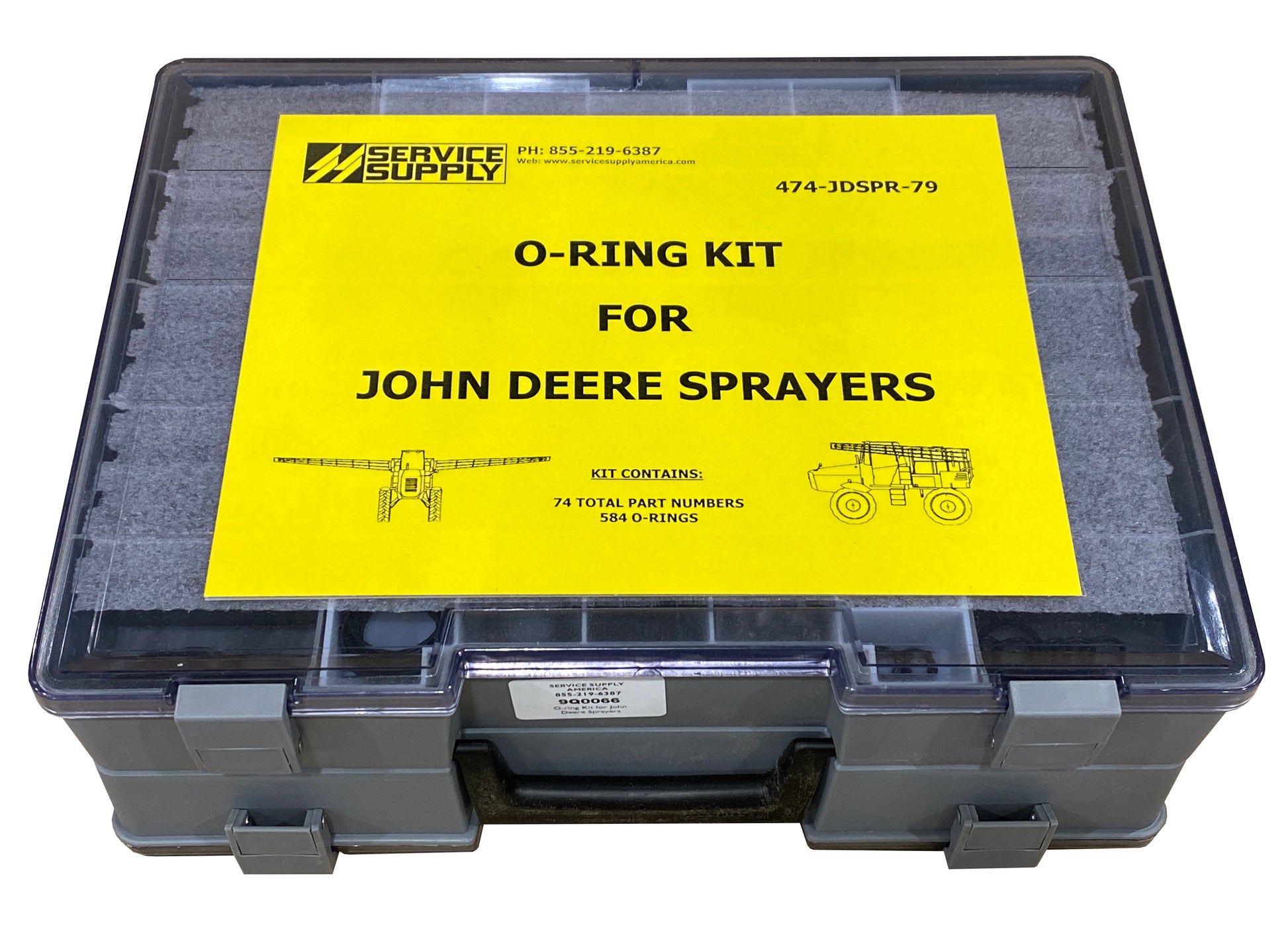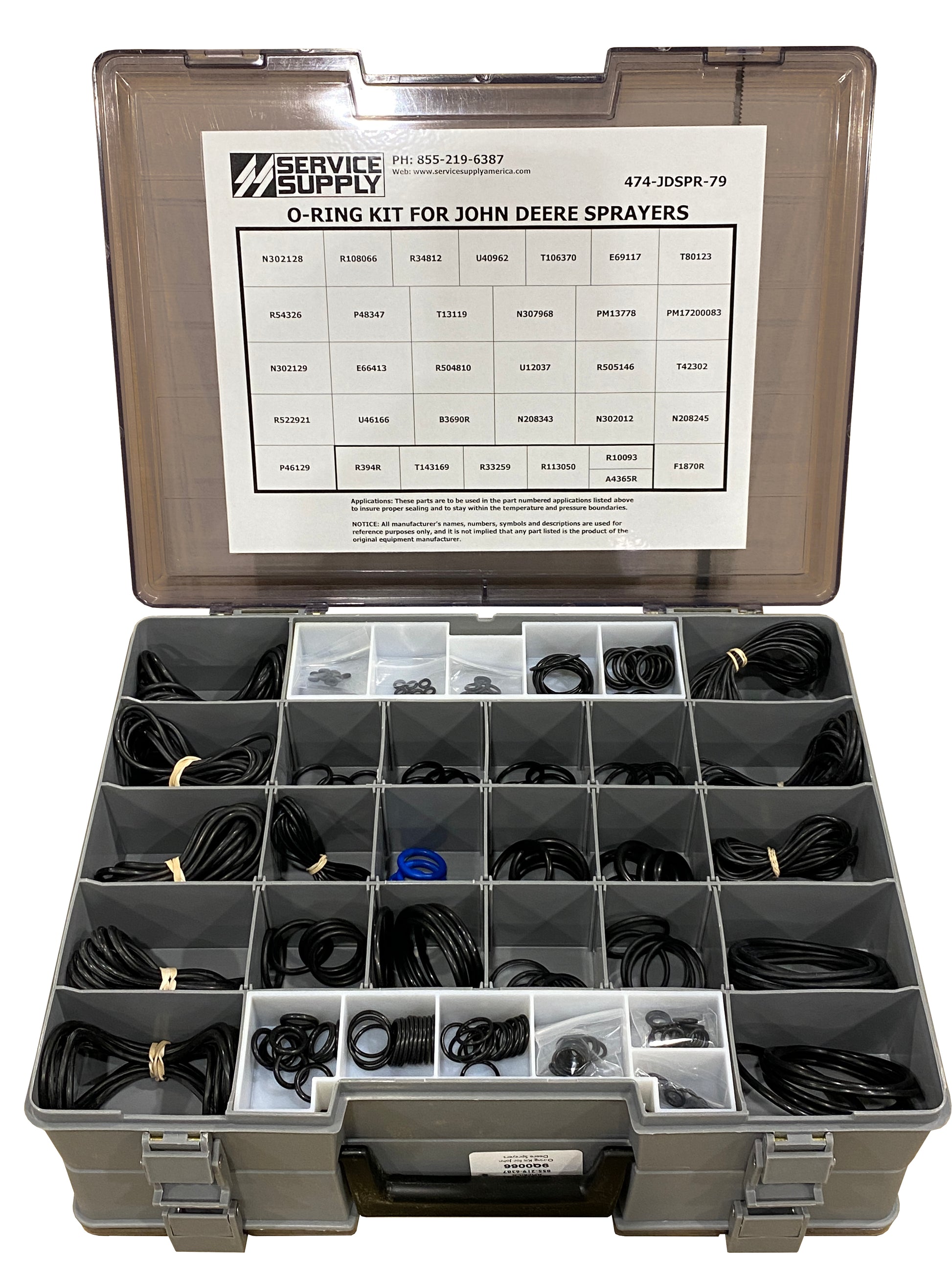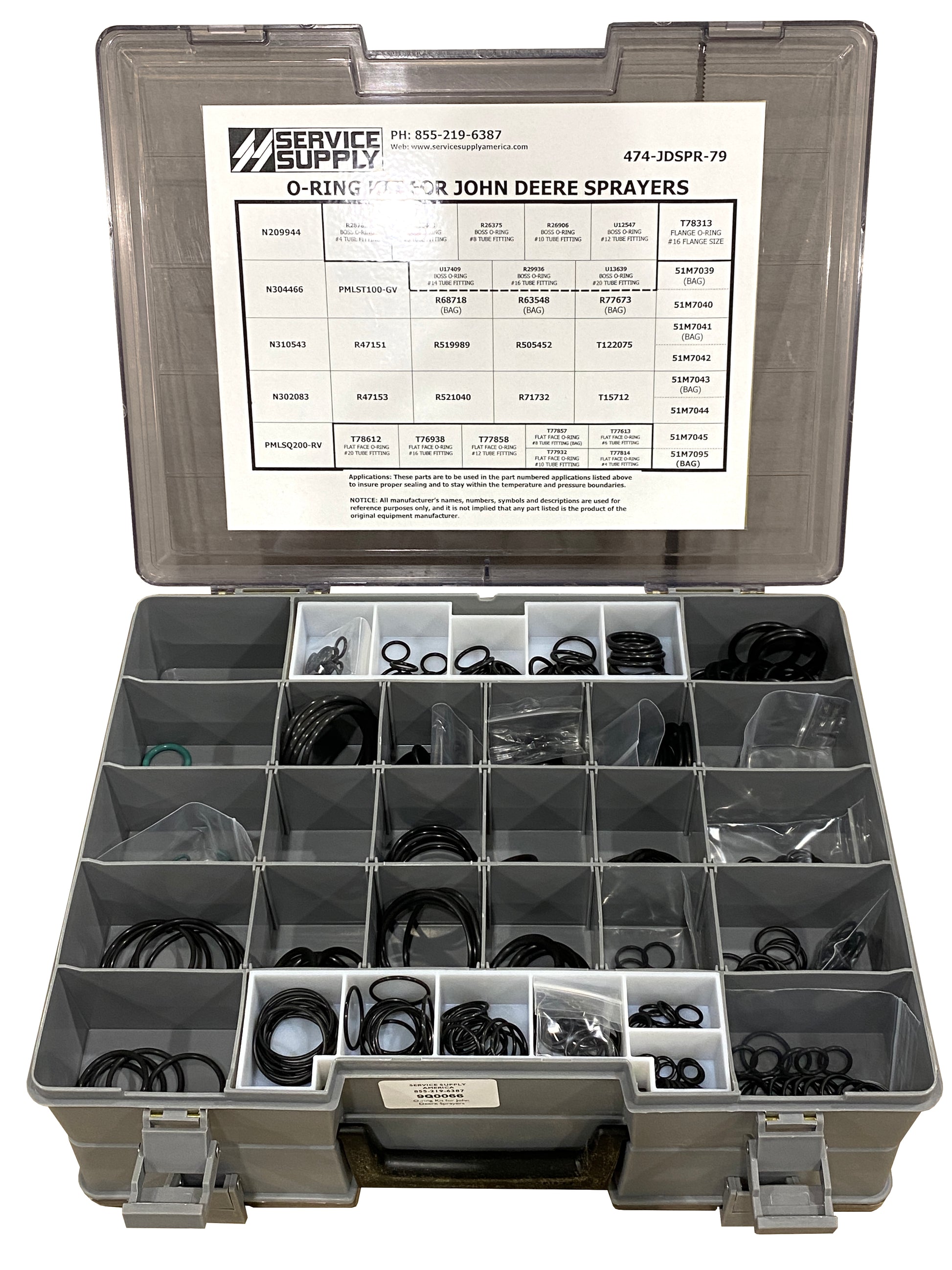 This double-sided, Industrial-grade AGRICULTURE O-ring kit contains a large assortment of high and low-pressure O-rings for John Deere sprayers.