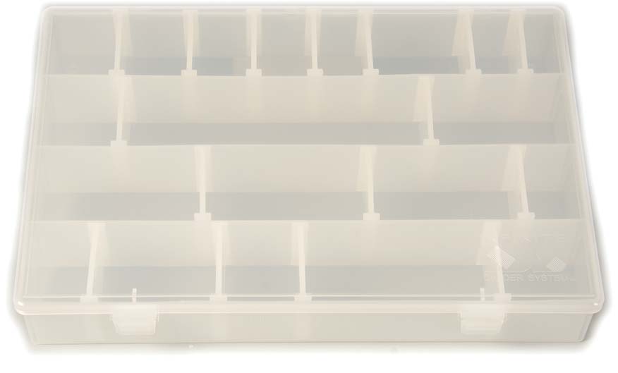 Multipurpose IDS translucent case featuring 16 dividers that can be placed throughout to create 4 to 20 compartments. This case is made to fit in the IDS Cabinet, although it can be used separately for many purposes.