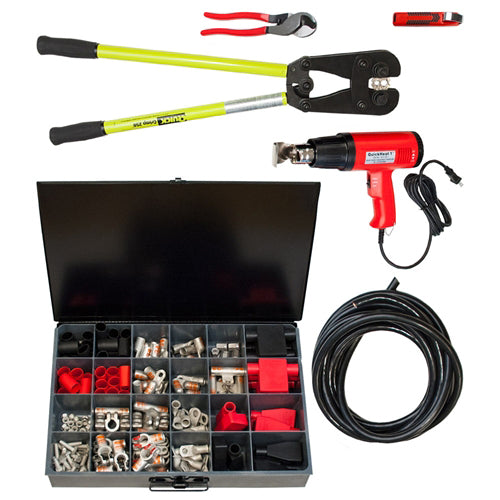 2/0 GA Heavy Duty Basic Kit - For all truck, agriculture construction, and industrial. Starter packs include tool kit, connectors, hardware, and bulk cable. More cost effective than purchasing pre-made cables and more versatile. Terminals meet or exceed SAE standards and are UL listed.