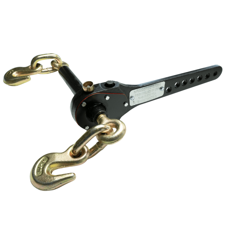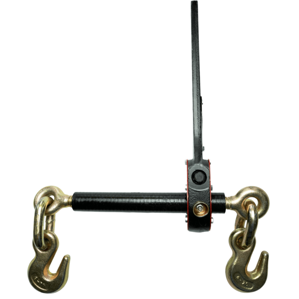 The ultimate for the steel hauler! 2” longer handle than our standard arm, Zinc coated rings, hooks and post threads. We are 25 to 1 gear reduced on this model. Long handle off set to bring the gear set closer to the operator (when handle placed to the right) for easier operation. Also, with the offset, we are essentially making the handle longer, with out making the handle longer! The handle is a reaction bar. Needs to be in contact with the floor or steel for proper tension retention. This version is also the preferred model for the RENTAL INDUSTRY. Boom lifts, Scissor lifts, JLG rough terrain lifts.