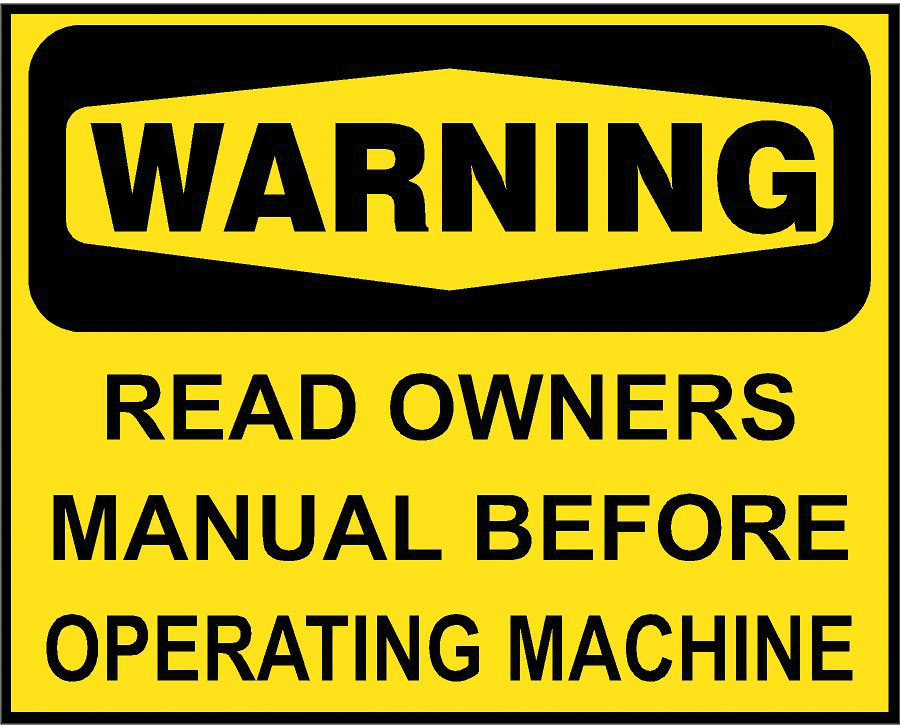 Warning Label: "Read Owners Manual Before Operating Machine", 5 Pk